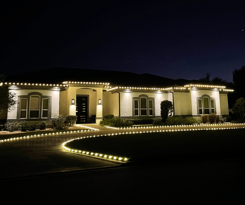 We love lighting up homes for the Christmas season! We use professional-grade lighting in colors of your choice, and will create a visual mock-up to go along with your quote. Rooflines, ground lighting, wreaths, garlands, or tree wraps–let us help you bring your vision to life!